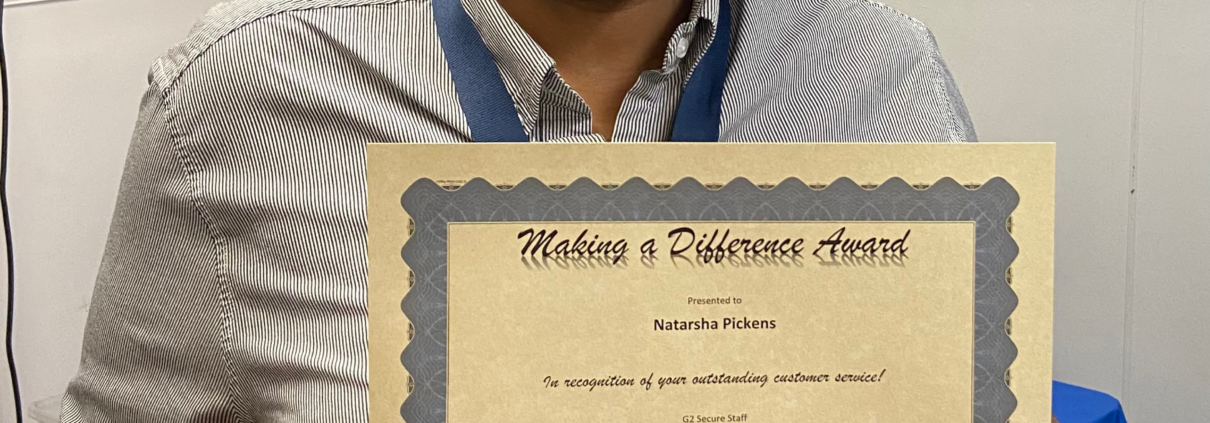 G2 Secure Staff would like to recognize Indianapolis International Airport (IND) wheel chair agent Natarsha Pickens. Recently a customer wrote in to say this: